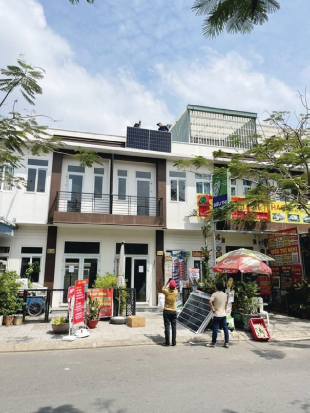 Ánh sáng mặt trời chiếu vào các tấm pin, tạo ra dòng điện một chiều (DC). Dòng điện này được bộ hòa lưới (inverter) chuyển đổi thành dòng điện xoay chiều (AC), sau đó được sử dụng để cung cấp điện cho các thiết bị trong gia đình. Nếu lượng điện sản xuất ra nhiều hơn nhu cầu sử dụng, phần điện dư sẽ được đẩy lên lưới điện quốc gia.